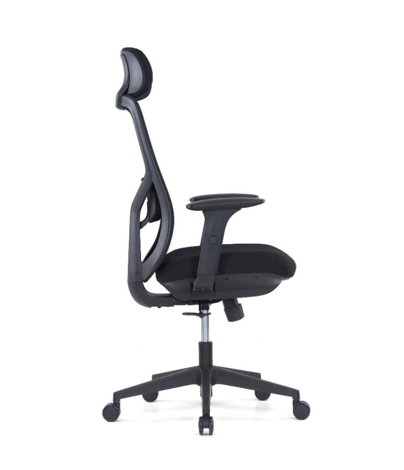 Headrest: Adjustable fabric headrest Frame: Black plastic+ glass fiber frame Back: Adjustable lumbar support