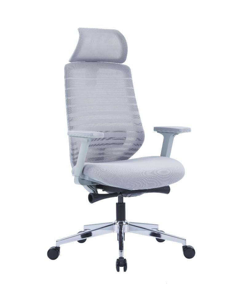 - Grey nylon fiberglass chair body, Korean 3D mesh, self-adaptive 3D-PP lumbar support